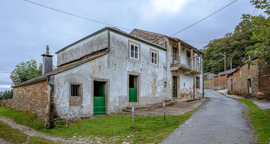 Esta casa rural se encuentra en una aldea del municipio de Vilalba, a 4 km del centro histórico de la capital comarcal de la Terra Chá. La propiedad cuenta con 1.212 m² de superficie total distribuidos en dos terrenos que rodean las construcciones.