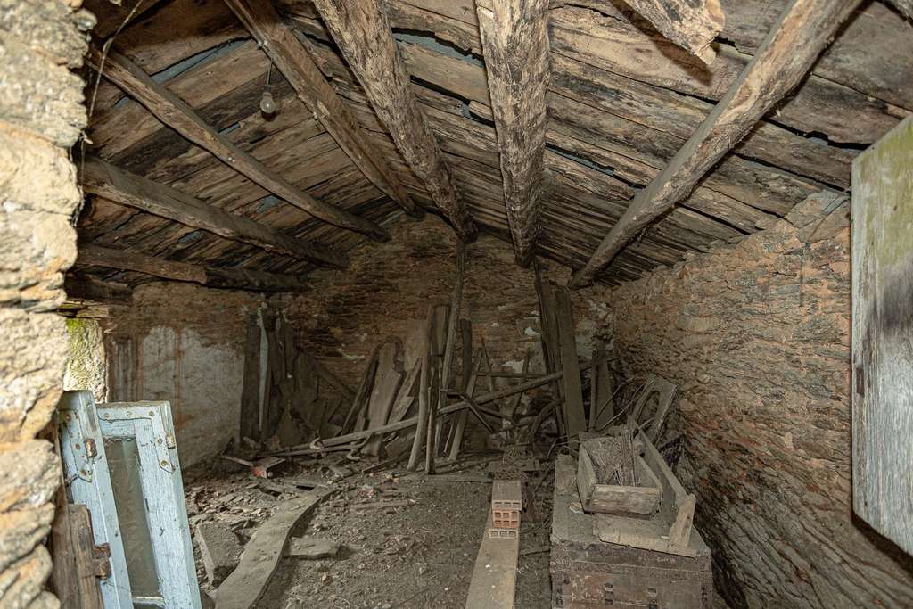 La vivienda principal es una casa de piedra de dos plantas totalmente habitable. La planta baja incluye hall de entrada, cocina completamente equipada con cocina de leña tradicional, cuarto de baño completo con ducha, pequeño almacén, antiguas cuadras reconvertidas con horno de leña, pequeño taller y accesos delantero y trasero.