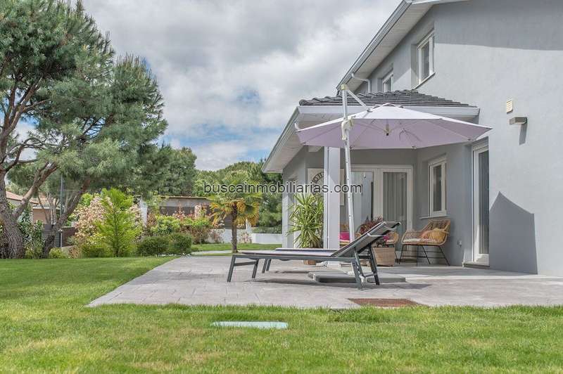 Magnífico Chalet independiente con una superficie de 200 m² construidos en parcela de 1.000 m². Vivienda prácticamente a estrenar en dos plantas. Jardín consolidado con amplia pradera de césped y variedad de vegetación y arbolado. Dispone de 3 dormitorios y 3 baños. Distribución: Planta principal de unos 100 m²: Amplio recibidor-hall, sala de estar o dormitorio con vestidor, o despacho, aseo de cortesía. Cocina equipada con salida al jardín, zona de lavado y cuarto de caldera. Salón comedor con salida a terraza y jardín. En primera planta de unos 100 m²: Distribuidor a dormitorios, baño completo, dos dormitorios secundarios, y dormitorio principal en suite con baño y vestidor.