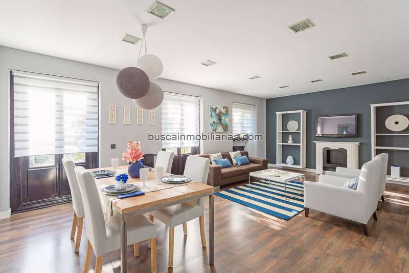 Superficie: 135 m2. Tercera planta exterior. El salón está amueblado con un sofá de tres plazas, una mesa de centro, dos sillones individuales, dos lámparas de pie y una TV de pantalla plana El área del comedor dispone de una mesa para seis personas. La cocina es amplia y está completamente equipada incluso con lavadora-secadora, frigorífico, lavavajillas, cafetera, tetera, tostador etc.. El dormitorio principal tiene una cama de (1,50m x 2,00m), dos mesillas de noche, tv, dos lámparas de cabecero, armarios empotrados y cuarto de baño en suite con ducha. El segundo dormitorio dispone de dos camas de (0,90m x 1,90m), una mesilla de noche, una lámpara de cabecero y armarios empotrados. Hay un segundo cuarto de baño con ducha. Todo el piso cuenta con suelo de madera.