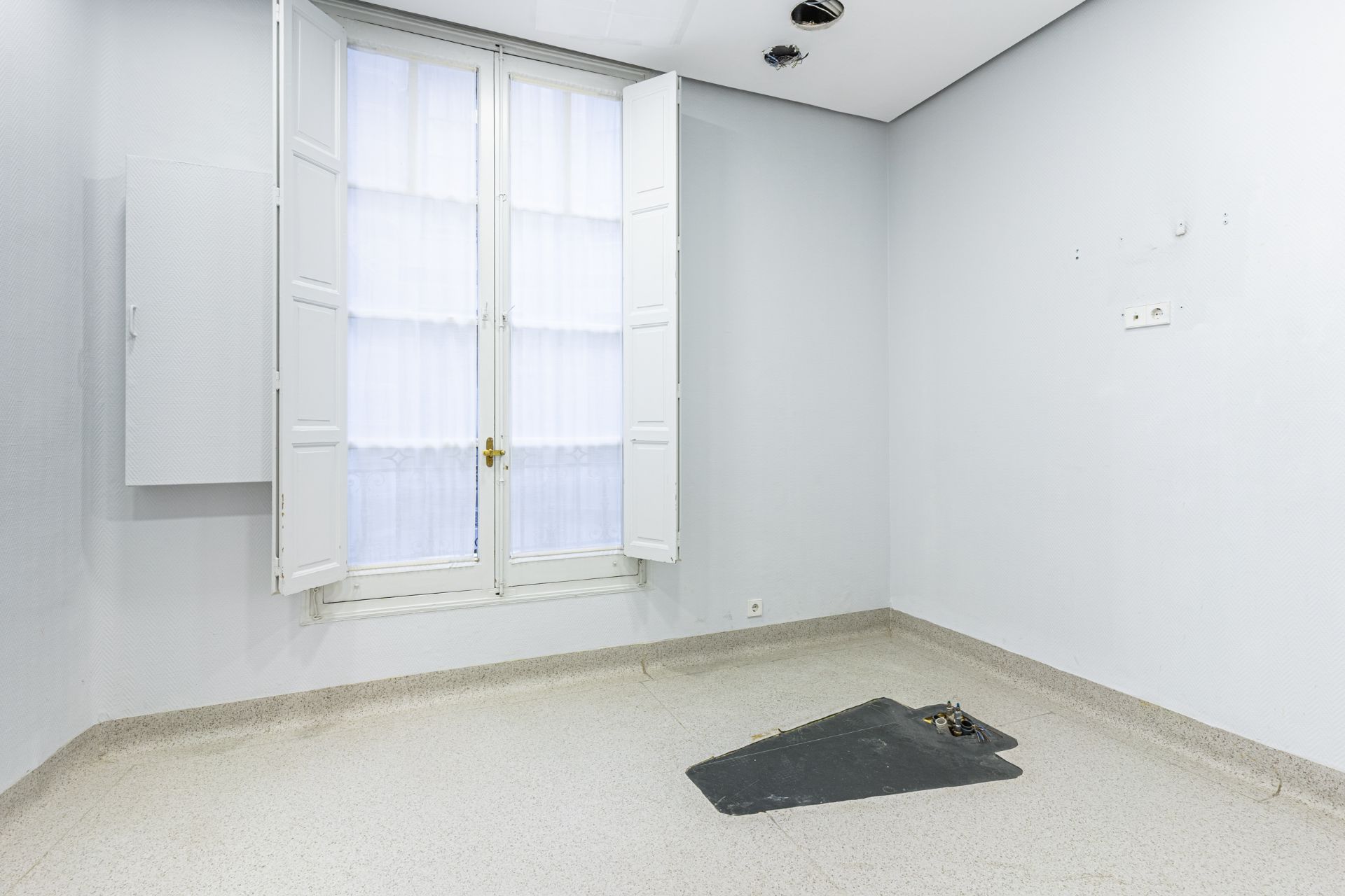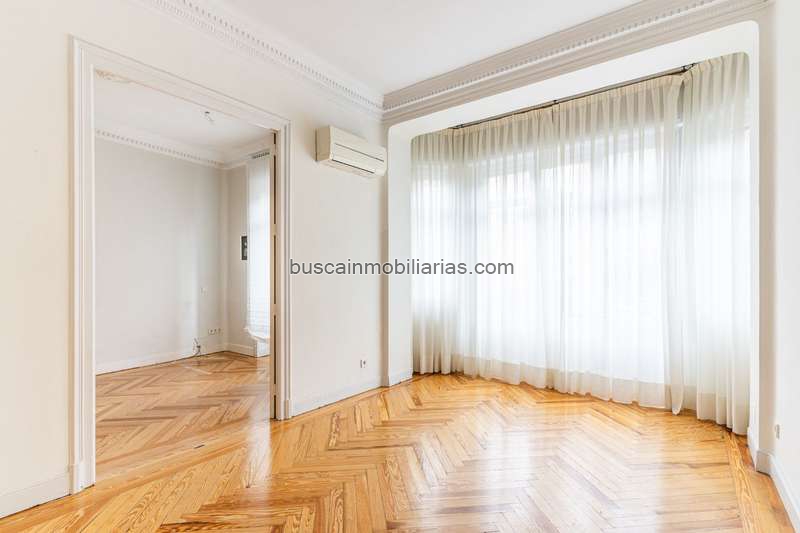 Accedemos a la vivienda por un amplio distribuidor que nos lleva a dos luminosas salas con preciosas molduras en sus altos techos y hermosas ventanas que dan a la calle. Un pasillo conecta con la zona de habitaciones, que se distribuyen en torno a un cuidado y espacioso patio. Esta distribución singular proporciona una flexibilidad notable en la reforma, ya que anteriormente, parte de las habitaciones eran utilizadas como salas de una clínica, permitiendo así múltiples opciones de diseño.