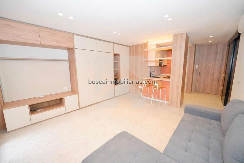 Precioso Estudio con Patio en Valdemoro (zona Centro), 28 m2 de superficie útil más 15 m2 de patio, cuenta con un amplio salón con cama empotrada, baño con plato de ducha, muebles de cocina con frigorífico y lavadora, altas calidades en solado de gres porcelánico de gran formato, pintura lisa, carpintería exterior de aluminio con doble cristal.