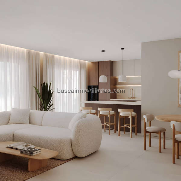 La vivienda dispone de tres amplios dormitorios y tres elegantes baños, diseñados con una estética contemporánea de primer nivel. La cocina de diseño de concepto abierto se integra perfectamente con el salón, creando un espacio sofisticado y funcional, ideal para un estilo de vida moderno.