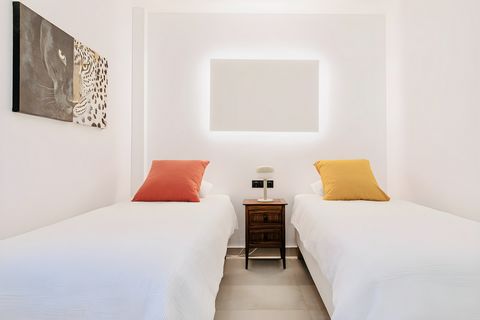 La suite principal, que se abre directamente a la terraza, incluye un vestidor y un baño moderno de microcemento. La segunda habitación, ideal para invitados o niños, cuenta con armarios empotrados y un baño también de microcemento.
