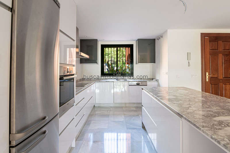 El apartamento con orientación suroeste en Benahavis cuenta con una plaza de aparcamiento subterráneo grande y segura a la que se accede a través del ascensor que llega justo delante de la puerta principal de la casa. Al abrir la puerta de entrada, la primera impresión es un espacio abierto muy acogedor y limpio, con el espacio de la cocina inteligentemente reformado que se ha abierto para integrar las zonas de estar y comedor en un estilo americano. Esto permite la máxima usabilidad para familias que desean preparar comida, comer y relajarse juntos. Además de esto está la encantadora terraza privada. Aquí el ejercicio y el relax se pueden realizar con total privacidad y vistas a las colinas que descienden hacia la costa oeste de Marbella.