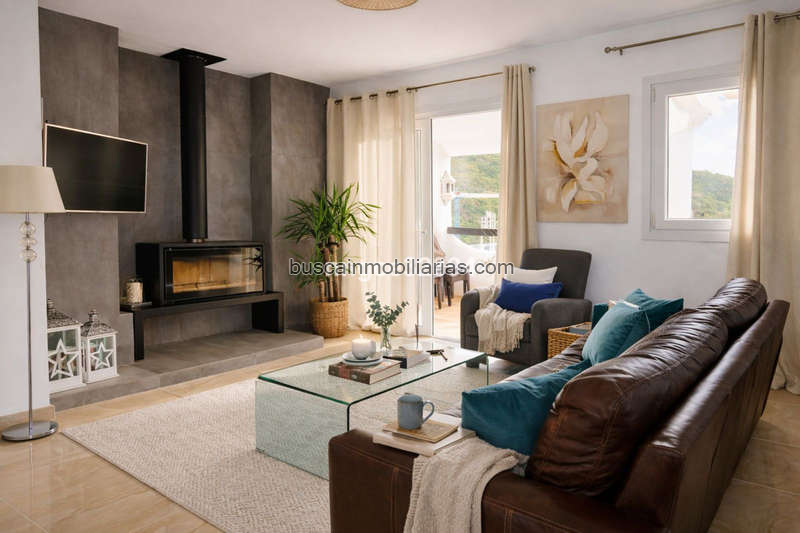 En el interior, esta luminosa vivienda renovada de 3 dormitorios y 2 baños ofrece comodidad y modernidad. El amplio salón de concepto abierto se conecta directamente con una generosa terraza ideal para invitar, con vistas serenas a las montañas, colinas verdes, tejados del pueblo e incluso vistas parciales al mar. El dormitorio principal con baño en suite también se abre a esta terraza, creando un refugio interior–exterior.