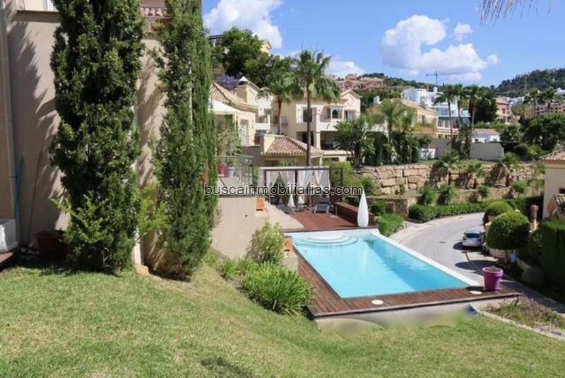 Villa de Lujo con Apartamento IndependienteEn una zona tranquila y residencial, a solo 3 km de la playa y muy cerca de comercios y servicios, se encuentra esta espectacular villa independiente, ideal para quienes buscan espacio, privacidad y lujo moderno.Construida en 2007 con materiales de alta calidad, esta propiedad ofrece un diseño elegante y práctico, con zonas interiores amplias y exteriores perfectamente cuidados.Distribución de la viviendaLa casa cuenta con 488 m2 construidos distribuidos en cuatro plantas: • Planta sótano / garaje: Garaje privado con capacidad para varios vehículos, trastero y acceso directo a la vivienda. • Planta baja: Salón amplio y luminoso con grandes ventanales, cocina moderna totalmente equipada, comedor independiente, aseo y acceso directo a terrazas y jardín. • Primera planta: Varias habitaciones en suite, todas con armarios empotrados y baños completos, ofreciendo el máximo confort y privacidad. • Segunda planta / solárium: Espacios abiertos con terrazas privadas, ideales para tomar el sol o disfrutar de vistas despejadas.Extras y equipamiento • Apartamento independiente con entrada propia (ideal para invitados, personal de servicio o alquiler). • Ascensor con acceso a todas las plantas. • Sauna privada. • Sistema de sonido Sonos integrado en toda la vivienda. • Aire acondicionado. • Piscina privada rodeada de jardín maduro con riego automático. • 4 terrazas y balcón. • Orientación este. • 2 plazas de parkingVentajas de la propiedad • Vivienda amplia, luminosa y diseñada para la máxima comodidad. • Entorno residencial muy tranquilo, en calle sin salida. • Cercanía a la playa (3 km) y a todos los servicios. • Ideal tanto como residencia habitual como inversión exclusiva en la Costa del Sol.