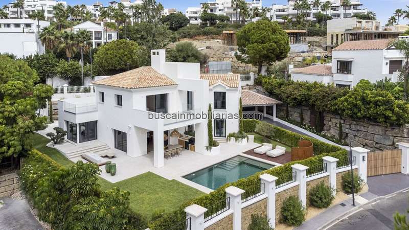 Una residencia de 4 dormitorios y 4 baños con un hermoso diseño, además de un aseo de invitados, ubicada en la codiciada urbanización privada de La Alquería, Benahavís. Con seguridad las 24 horas, esta villa combina comodidad moderna, privacidad y estilo, perfecta para quienes buscan un refinado estilo de vida mediterráneo. Al entrar, encontrará una distribución diáfana y luminosa que incluye una cocina totalmente equipada con electrodomésticos Miele de alta gama, que se integra a la perfección con el amplio salón y comedor. Diseñada para ofrecer comodidad durante todo el año, la villa incluye aire acondicionado con calefacción, así como suelo radiante en todos los dormitorios y baños.Cada uno de los cuatro dormitorios con baño en suite está decorado con gusto, ofreciendo comodidad y privacidad tanto a residentes como a invitados. En la planta superior, una terraza privada ofrece vistas parciales al mar, el lugar ideal para tomar un café por la mañana o relajarse por la noche. En el exterior, disfrute del exuberante jardín y la piscina privada, las terrazas cubiertas y descubiertas, y la cocina exterior con barbacoa, perfecta para recibir invitados o relajarse bajo el sol. Otras características incluyen una cochera con espacio para tres vehículos y amplio espacio de almacenamiento. Tanto si busca una vivienda permanente como un refugio de lujo, esta villa ofrece la combinación perfecta de tranquilidad, seguridad y modernidad, a un corto trayecto en coche de Marbella y la costa. ¡El mobiliario está incluido en el precio!