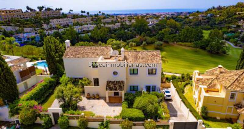 Fantastic five bedroom, south facing villa in La Quinta, Benahavis; just a short drive from local amenities, Puerto Banus and Marbella. The property has a spacious entrance hall leading to a large living room; fully fitted kitchen and dining room; and a guest toilet. From all rooms on this level, you can access the terrace, private garden and swimming pool which boast lovely views to the sea and golf course. The first floor has the master suite with vaulted ceilings, walk in closet and bathroom; two guest bedrooms; and a guest bathroom. The lower level of the property has a kitchen and dining area with independent access from the garden; two guest suites; and a cinema room. Other features include hot and cold air conditioning, alarm, demotic system, electric shutters and a private garage.