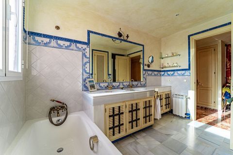 The villa`s entrance is marked by a welcoming porch that leads to a double height entrance hall with fireplaces creating a warm and inviting atmosphere. Each room of the villa is spacious and comfortable with high ceilings and abundant natural light adding an extra touch of luxury and style The villa is also equipped with air-conditioning, gas central heating, and hot water is provided by solar panels to ensure comfort throughout the year.