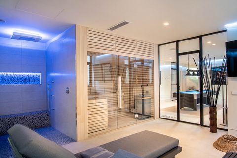 Additional features include a private elevator, solar panels, generous storage areas, and a host of amenities designed for modern luxury living. Situated in the exclusive enclave of La Alqueria and completed in 2019, this villa represents a flawless blend of architectural mastery and lifestyle comfort.