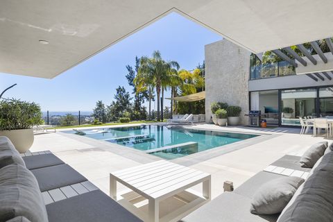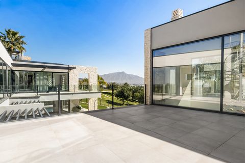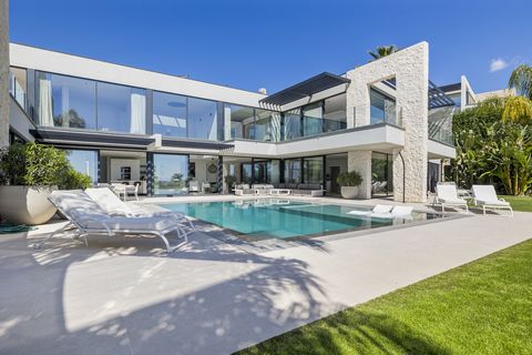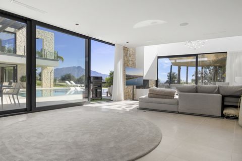 Newly built contemporary villa situated in the prestigious urbanization of La Alquería, Benahavís. Positioned frontline golf and facing east to south, the property offers panoramic views of the Mediterranean Sea, the coastline, and the iconic La Concha mountain.