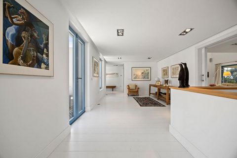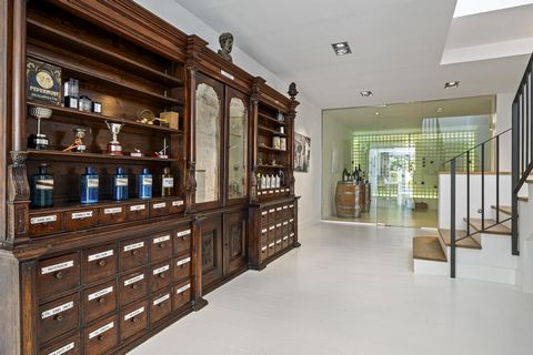 Un amplio camino de entrada conduce a un espectacular patio que da paso a una vivienda diseñada para disfrutar de una experiencia de vida sofisticada. La planta principal cuenta con un espacioso salón con techos altos y chimenea, un comedor independiente y una cocina abierta totalmente equipada con electrodomésticos de alta gama de marcas como Siemens, Miele y Liebherr. Junto a la cocina, se encuentra un dormitorio adicional, ideal para invitados, personal o como despacho.