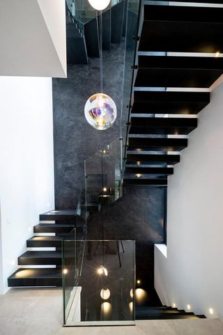 Ubicada en una amplia parcela de 1.283 m², la vivienda se distribuye en cuatro niveles cuidadosamente diseñados. Las amplias zonas de estar de planta abierta están realzadas por paneles de vidrio de suelo a techo que inundan el interior de luz natural y crean una conexión fluida con los espacios exteriores. La cocina de última generación, equipada con electrodomésticos de alta gama y un diseño moderno y elegante, convierte la vida cotidiana en una experiencia extraordinaria.