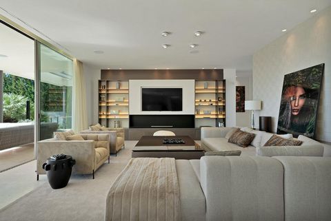 Esta cautivadora villa contemporánea, situada en la prestigiosa comunidad cerrada de Atalaya, ofrece impresionantes vistas abiertas al campo de golf. Distribuida en tres niveles, la villa da la bienvenida con un majestuoso hall de entrada y un diseño de planta abierta que incluye una cocina totalmente equipada con electrodomésticos Miele, un comedor y un amplio salón. Las puertas de terraza de piso a techo conducen a una gran terraza cubierta con vistas al exuberante jardín y la piscina. Detrás del salón, un pasillo lleva a un dormitorio con baño en suite, actualmente utilizado como oficina, además de un aseo de cortesía.