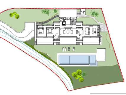 Portón eléctrico en la entrada de la finca con apertura remota para acceso de vehículos. Jardín privado ajardinado con piscina privada.
