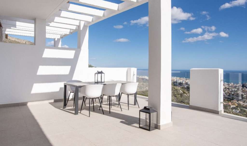 Este moderno ático dúplex de 3 dormitorios tiene una sala de estar de planta abierta que conduce a una amplia terraza que ofrece fantásticas vistas panorámicas de la costa de Benalmádena. La cocina de planta abierta está totalmente equipada con electrodomésticos Siemens. Y la gran terraza de la última planta incluye un jacuzzi en el que disfrutar de los increíbles atardeceres. La comunidad cerrada incluye un gimnasio totalmente equipado, sauna y una gran piscina rodeada de jardines andaluces maduros. Mientras que las propiedades incluyen espacios de estacionamiento y almacenamiento.