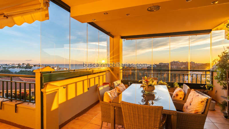 La propiedad cuenta con dos dormitorios, dos baños completos, armarios empotrados y una cocina independiente bien equipada. Destaca especialmente la terraza cerrada con cortinas de cristal, que amplía el espacio de uso durante todo el año y permite disfrutar de la luz natural y las vistas en cualquier estación. La vivienda incluye plaza de aparcamiento y se encuentra dentro de un complejo bien mantenido, con zonas comunes y un entorno tranquilo.