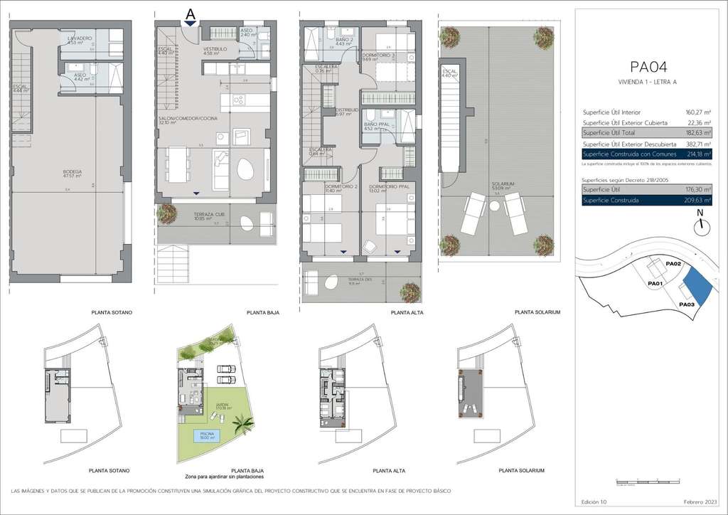 La promoción consta de 44 viviendas contemporáneas de 2 y 3 dormitorios, cada una con dos plazas de aparcamiento privado y un trastero. Elija entre amplios apartamentos con grandes terrazas, áticos con soláriums privados o adosados y viviendas pareadas con amplios jardines privados y, en algunas unidades, sótanos para mayor versatilidad. Todas las viviendas están diseñadas para aprovechar al máximo la luz natural y ofrecen orientación sureste o suroeste para disfrutar de las impresionantes vistas al mar durante todo el año.