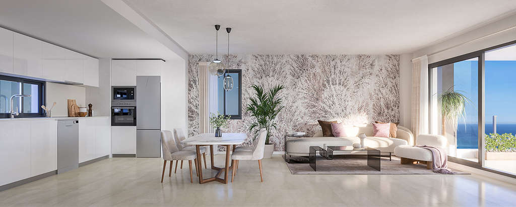 Esta promoción está situada en un entorno privilegiado, en Torremuelle, Benalmádena, una ubicación que combina la cercanía a la naturaleza y al mar con unas impresionantes vistas panorámicas del Mediterráneo. El proyecto consta de 44 viviendas plurifamiliares de 2 y 3 dormitorios, todas ellas con 2 plazas de garaje y un trastero incluidos. Forma parte de un exclusivo complejo privado que incluye completas zonas comunes diseñadas para el disfrute y la tranquilidad de sus residentes. EXTERIORES El complejo destaca por su diseño moderno e integrado en el entorno natural. Sus fachadas luminosas y amplias terrazas permiten aprovechar al máximo la luz natural y disfrutar de las vistas al mar y las áreas verdes circundantes. Además, su orientación al sureste y suroeste asegura una excelente luminosidad durante todo el día. INTERIORES Las viviendas han sido diseñadas para ofrecer confort y funcionalidad. Cuentan con distribuciones optimizadas que maximizan el espacio y la comodidad, así como acabados de alta calidad que reflejan un estilo contemporáneo. Las amplias terrazas en cada vivienda son el lugar perfecto para disfrutar del clima mediterráneo y las espectaculares vistas. ZONAS COMUNES Este complejo privado dispone de dos piscinas comunitarias rodeadas de zonas ajardinadas, ideales para relajarse o compartir momentos con familiares y amigos durante los días más cálidos del año. Todo esto se complementa con un entorno natural cuidado que invita al bienestar y la tranquilidad. La ubicación cuenta con una excelente conexión gracias a la proximidad a la N-340, y ofrece una amplia variedad de servicios básicos como supermercados, farmacias y restaurantes, asegurando una vida cómoda y práctica a pocos minutos de casa.