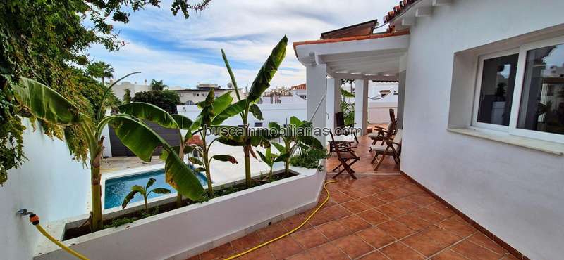En venta, espectacular Villa Independiente ubicada a tan solo 400 metros de la playa en Puerto Marina. Esta propiedad ha sido reformada integralmente utilizando materiales de alta gama, garantizando un entorno contemporáneo y acogedor. La planta baja cuenta con un amplio salón comedor que se conecta a una luminosa cocina abierta equipada con grandes ventanales; además, dispone de tres dormitorios dobles y dos baños completos, siendo el dormitorio principal tipo suite. Todos los dormitorios tienen acceso directo al jardín privado. En la planta superior encontraremos otro dormitorio complementado por un baño completo y un solárium ideal para disfrutar del clima cálido mediterráneo.