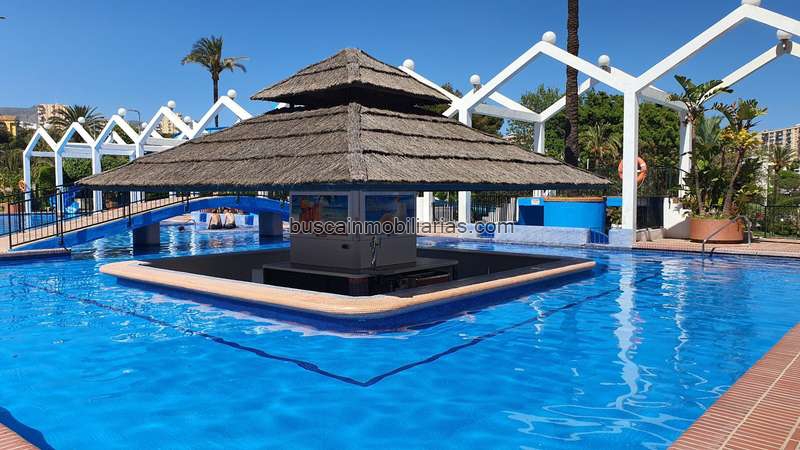 Amplio Estudio Suite con terraza soleada en un complejo de primera línea de playa. Esta propiedad soleada se encuentra en el complejo Benal Beach frente al mar y junto al Parque Paloma. Terraza orientada al suroeste con vistas a los jardines. Además, tiene un acceso directo muy fácil a la playa bajando un piso y caminando directamente a través de los jardines hasta la puerta exterior, que está justo frente a la playa. La comunidad tiene recepción 24 horas con gimnasio privado con instalaciones de spa. También en el lugar hay un supermercado, restaurantes y 4 piscinas comunitarias con toboganes y grandes jardines comunitarios. Además de tener el complejo una posición frente a la playa, justo fuera del complejo hay un gran parque con lago. También cerca se encuentra Puertomarina y la ciudad de Arroyo de la Miel con sus calles comerciales y la estación de tren que conecta con el aeropuerto y el centro de Málaga. ¡Gran propiedad con una posición privilegiada, visitas muy recomendadas!