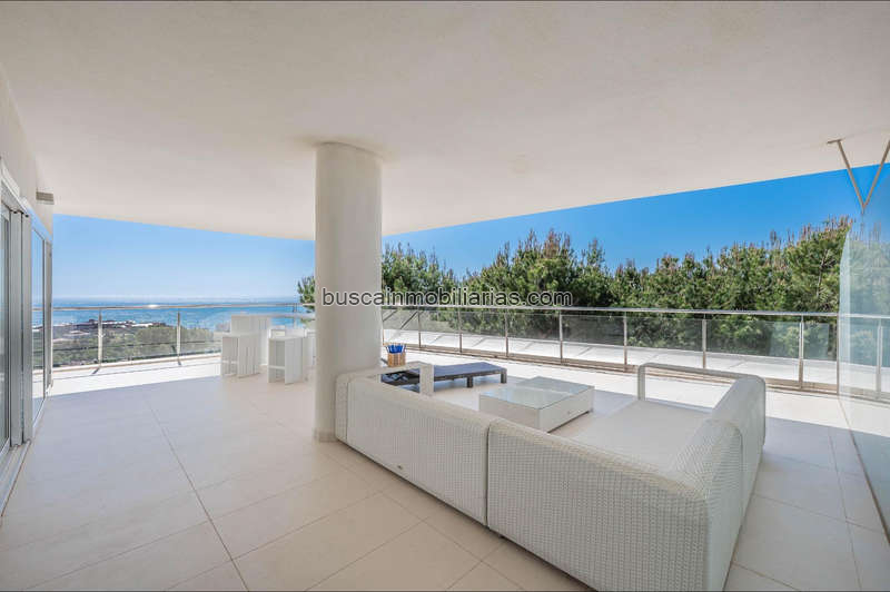Desde cualquier punto del salón se disfruta de vistas abiertas al mar y a la costa gracias a sus grandes puertas acristaladas de suelo a techo que llenan toda la vivienda de luz natural. Diseño contemporáneo con cocina abierta al salón equipada con encimera de Silestone y electrodomésticos Siemens
