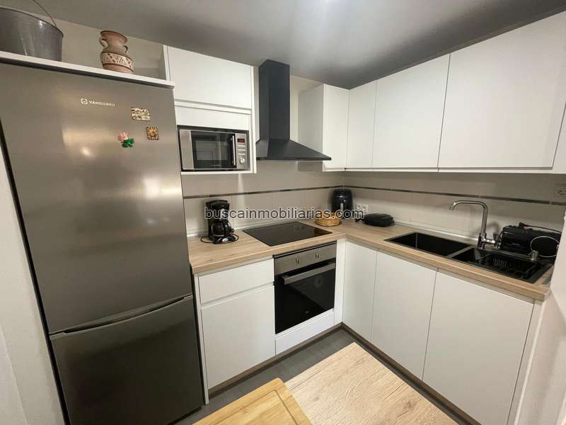El piso cuenta con un amplio dormitorio, baño completo y una cocina integrada en un salón muy luminoso.