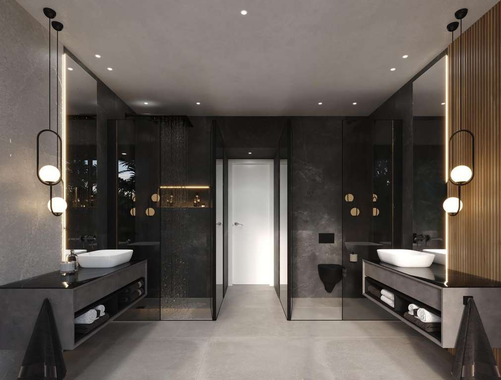 Esta villa única consta de una espaciosa planta baja con una cocina de planta abierta y sala de estar que fluye sin esfuerzo hacia amplias terrazas y una zona chill-out junto a la piscina infinita curvada.