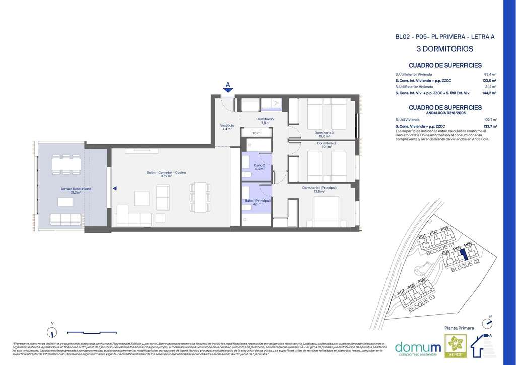 Complejo residencial de 65 apartamentos de 2 y 3 dormitorios, todos ellos equipados con parking y trastero.