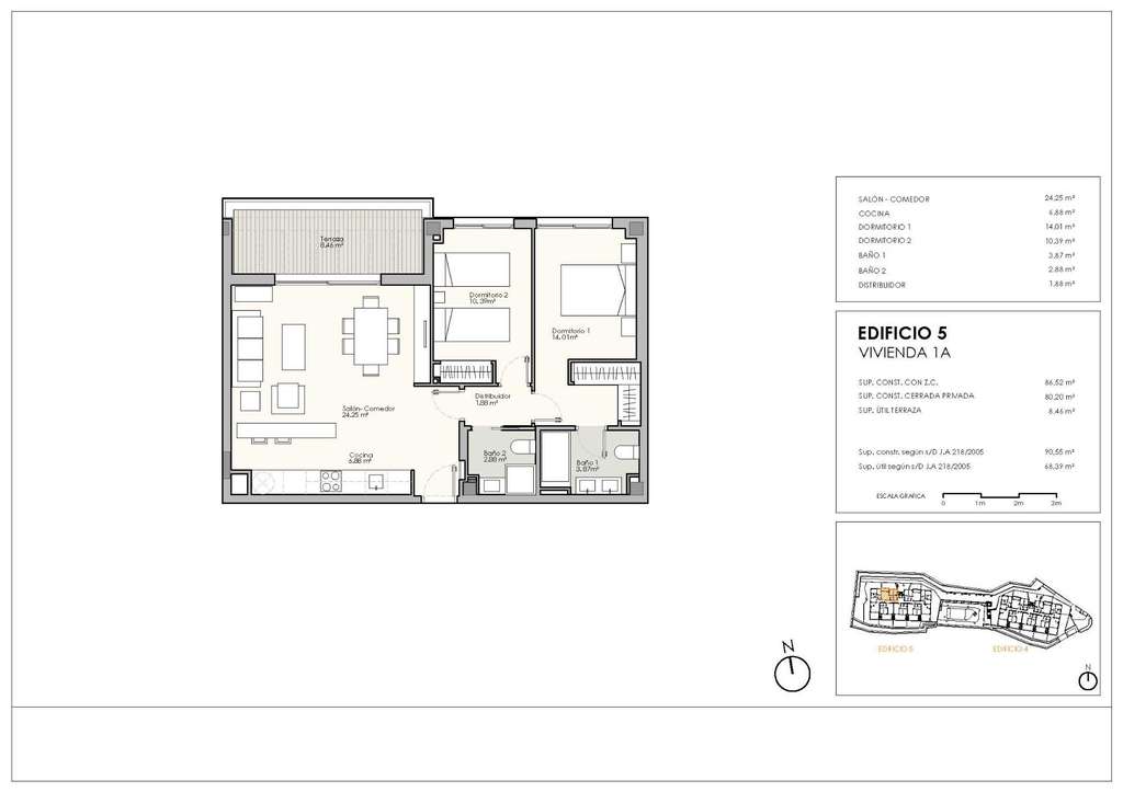 Conjunto residencial de obra nueva en Casares compuesto por 47 viviendas plurifamiliares y áticos de 1, 2 y 3 dormitorios. Cada vivienda dispone de garaje y trastero incluidos.