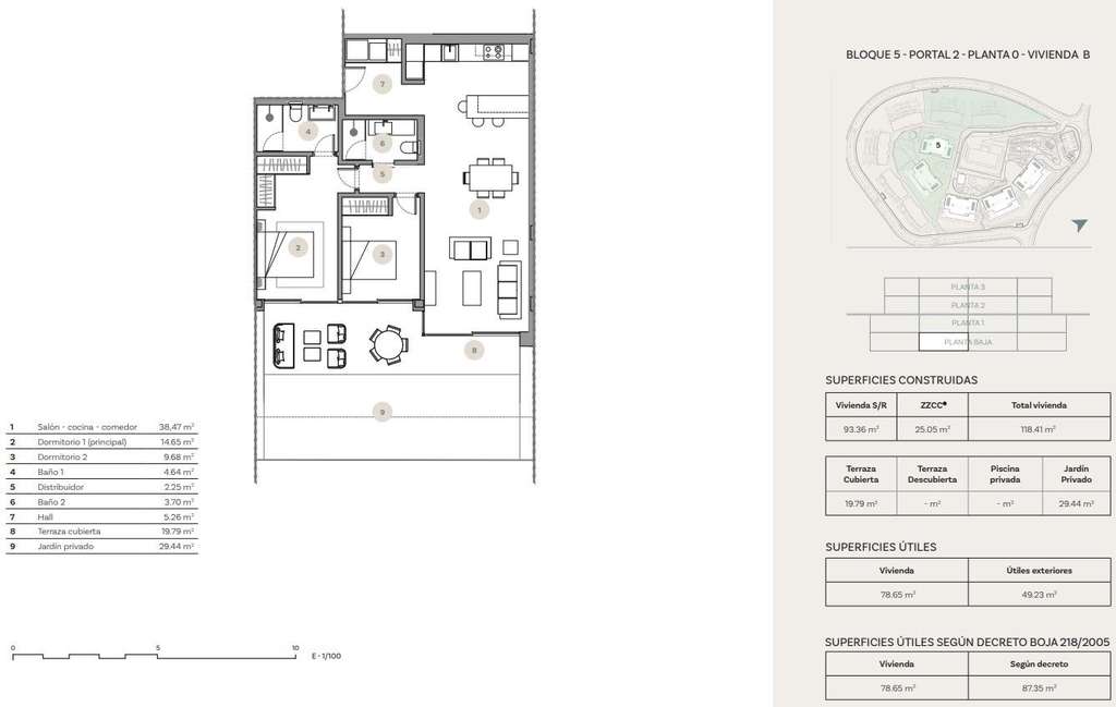 El diseño de la urbanización incorpora paisajes mediterráneos y tropicales, creando un entorno sereno y acogedor. Los interiores presentan una paleta de colores naturales que complementa el exuberante entorno, fomentando una sensación de calma y conexión con la naturaleza.