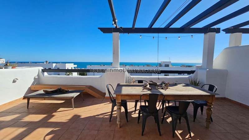 La entrada consiste en un espacioso hall que lleva hacia el salón con comedor, que es muy luminoso; y a la cocina abierta e integrada en esta área, que está totalmente equipada y amueblada a medida. Toda la zona está orientada hacia el sur, y conectada al exterior mediante ventanales de suelo a techo con doble acristalamiento. Las zonas exteriores son absolutamente espectaculares y gozan de vistas panorámicas al mar Mediterráneo, Gibraltar, África, Bahía de Casares, campo de golf y montañas. Gracias a sus dos terrazas es posible disfrutar del sol durante todo el día. Una de las dos terrazas privadas consta de unos 50m2 con vistas panorámicas al mar y, la segunda, alrededor de 30m2 en primera línea del campo de golf. Además, esta fantástica propiedad cuenta con un solárium de unos 80m2, suficiente espacio para integrar un jacuzzi con sofás exteriores y sombrillas, área para tomar el sol, una mesa de comedor y barbacoa, puesto que tiene su propia preinstalación de cocina exterior con fregadero. Gracias a estas instalaciones, se trata de una vivienda con mucho potencial para disfrutar al aire libre con familia, amigos e invitados... ¡Una auténtica joya! La habitación principal es luminosa y está conectada a una de las terrazas privadas, tiene su propio vestidor que da acceso al baño de mármol totalmente equipado con bañera, calentador de toallas y ventilación. En esta estancia, uno puede disfrutar de las preciosas vistas al mar desde la cama. En cuanto a las habitaciones de invitados, ambas son dobles y con acceso a las distintas terrazas. Hay un baño de invitados completamente equipado con ducha a ras del suelo, calentador de toallas y un ventanal. En cuanto a las especificaciones, son de alta gama: alarma, portero automático, puerta blindada, doble acristalamiento, suelos de mármol, armarios empotrados, electrodomésticos, sanitarios de mármol, aire acondicionado centralizado y acabados de madera de roble en terraza. Además, el apartamento incluye una plaza de garaje subterráneo y trastero. La urbanización cerrada tiene unos preciosos jardines tropicales y dos piscinas con solárium, tumbonas y vestidores con aseos. Hay un gimnasio totalmente equipado y un gimnasio exterior, para uso exclusivo de los propietarios y sus invitados. Tiene seguridad las 24 horas y conserje. Se trata de una oportunidad excelente para adquirir un apartamento con vistas maravillosas y espacioso, construido en 2020 y listo para entrar a vivir. Este maravilloso ático moderno puede usarse como residencia permanente, casa de vacaciones o una inversión para el futuro, ya que se trata de una área en constante revalorización. Está a 10 minutos andando de la playa, a pocos minutos del paseo marítimo con chiringuitos, campo de golf Doña Julia, centro de Sabinillas y el Puerto de la Duquesa; a tan solo 15 minutos en coche de Estepona y el puerto de Sotogrande, mientras que Marbella y Puerto Banús se encuentran a 25 minutos. ¡Una propiedad verdaderamente maravillosa! ¡Solicítanos visitarla ahora!