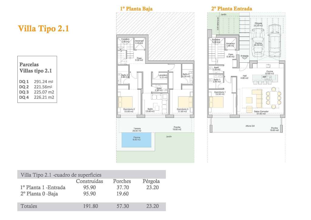 Todas las viviendas incluyen un sistema de aire acondicionado central totalmente instalado, calefacción por suelo radiante, domótica, puerta de entrada blindada y persianas eléctricas en los dormitorios. También hay espacio para instalar un ascensor privado. Cada villa cuenta con una plaza de aparcamiento doble que garantiza comodidad, seguridad y conveniencia.