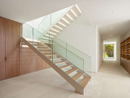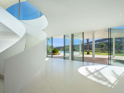 El interior de la villa es un espacio luminoso y abierto, diseñado para maximizar la conexión entre el interior y el exterior. La planta baja alberga amplias zonas de estar, un comedor elegante y una cocina completamente equipada que combina estilo y funcionalidad. Las cuatro habitaciones, diseñadas con un carácter único, ofrecen un oasis de confort, todas ellas bañadas por la luz natural gracias a las grandes ventanas y puertas corredizas de vidrio. Una escalera de caracol, cuidadosamente elaborada, conecta los niveles de la villa, creando un sentido de fluidez y grandiosidad en todo el espacio.