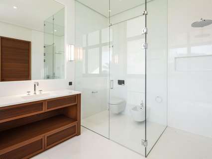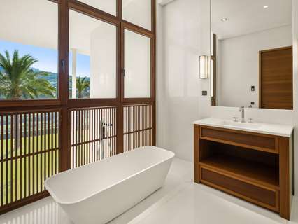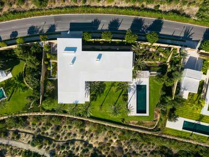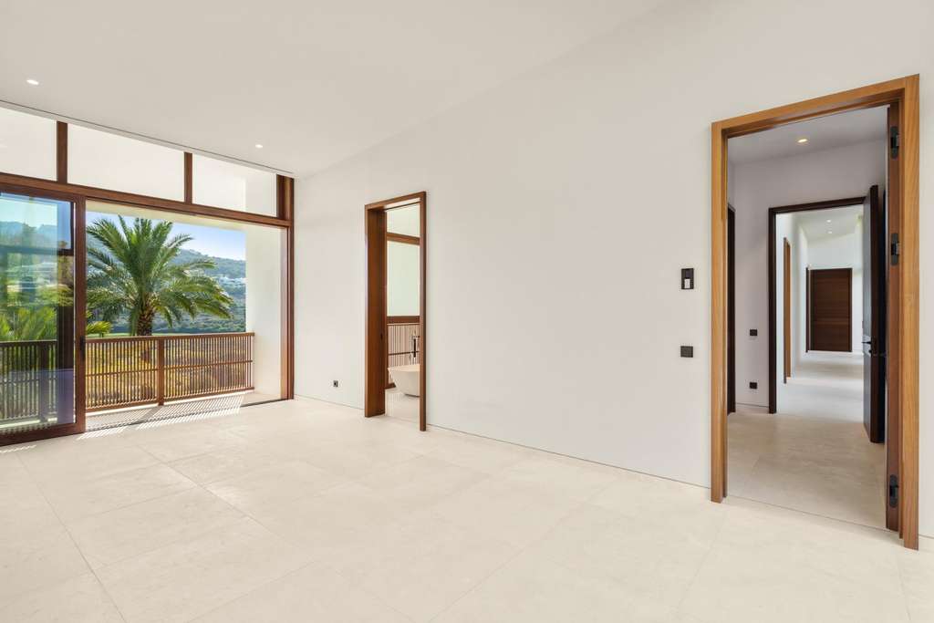 EXCLUSIVA VILLA DE LUJO DE OBRA NUEVA EN FINCA CORTESÍN, CASARES Esta excepcional residencia, exclusiva del complejo Finca Cortesín, desprende una cautivadora mezcla de lujo y elegancia. Diseñada por los renombrados arquitectos José María Sierra, esta obra maestra arquitectónica no tiene rival en la Costa del Sol, con una parcela extraordinaria y unas vistas impresionantes. La propiedad exhibe una abundancia de ventanas de suelo a techo que adornan ambos niveles, permitiendo que la luz natural inunde los interiores. Su llamativa fachada blanca, adornada con detalles de madera, establece el tono para una transición perfecta entre los espacios exteriores e interiores. Cabe destacar la impresionante altura del techo, que alcanza los 9 metros en el salón de la planta baja. Una característica única es la sala de estar más pequeña en la planta superior, que ofrece un mirador con vistas a la sala de estar de la planta baja, un refugio privado, similar a una terraza oculta dentro de la propiedad. La planta superior está dedicada al dormitorio principal y a dos habitaciones de invitados, cada una de ellas con su propio encanto e impresionantes vistas al campo de golf y al mar Mediterráneo. La planta baja alberga el resto de dormitorios, el salón y la cocina, una armoniosa mezcla de funcionalidad y estilo. Toda la planta baja se abre sin esfuerzo al jardín, dando la bienvenida al aire fresco y la luz natural en la propiedad. La joya de la corona de esta residencia es el espectacular jardín, de gran tamaño y meticulosamente cuidado. Un paraíso para los amantes del aire libre, el jardín cuenta con una tentadora piscina con azulejos azul oscuro que invita a un refrescante baño, mientras que el cenador integrado junto a la piscina ofrece un entorno idílico para la relajación. Majestuosas palmeras bordean el jardín, complementando las amplias vistas del campo de golf y la costa mediterránea. El encantador paisajismo, con impresionantes parterres de flores y arbustos meticulosamente recortados, añade un toque de belleza natural. Con su privilegiada ubicación en primera línea de golf, su impresionante arquitectura y su ambiente incomparable, esta propiedad verdaderamente única es un testimonio del encanto de Finca Cortesín Resort. 425
