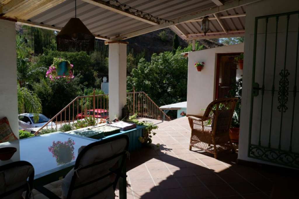 La casa está situada en un terreno elevado y consta de un salón alto de 3,5x8 m con un altillo de 3,5x3,5 m, donde se puede estar de pie fácilmente, un baño de 3x1,5 m con inodoro y ducha y una cocina independiente de 3x5 m. La casa tiene una amplia terraza cubierta una especie de porche, con vistas a la piscina y al terreno. Hay varias terrazas donde relajarse. En el sur de España también se vive fuera casi todo el año.