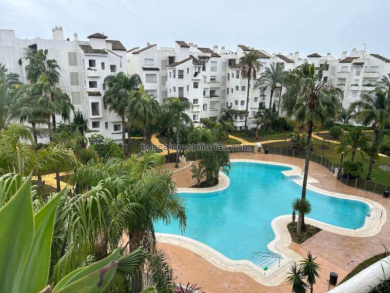 Se alquila elegante apartamento de 2 dormitorios y 2 baños, completamente reformado y en excelente estado, ubicado en la tercera planta de un edificio con ascensor en una tranquila y cuidada zona residencial de Estepona, una de las localidades más atractivas de la Costa del Sol. Con una superficie construida de 115 m2, esta luminosa vivienda destaca por sus agradables vistas al jardín, así como vistas parciales al mar y a la montaña, ofreciendo un entorno relajante y confortable durante todo el año.