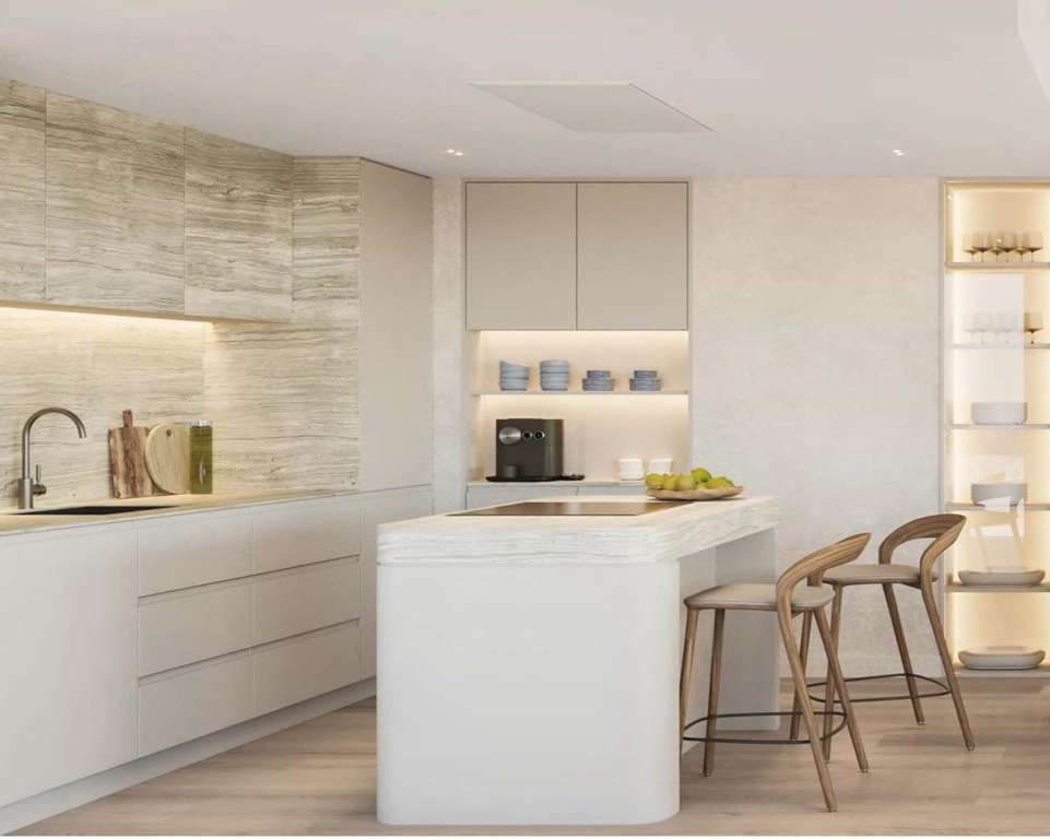 La promoción ofrece apartamentos de 1, 2 y 3 dormitorios, todos ellos cuidadosamente diseñados con grandes ventanales panorámicos, formas orgánicas fluidas y amplias terrazas. Estos elementos se combinan para crear viviendas llenas de luz natural, carácter y elegancia contemporánea. Muchas de las viviendas cuentan con doble o triple orientación para mejorar la ventilación y disfrutar de unas vistas panorámicas.