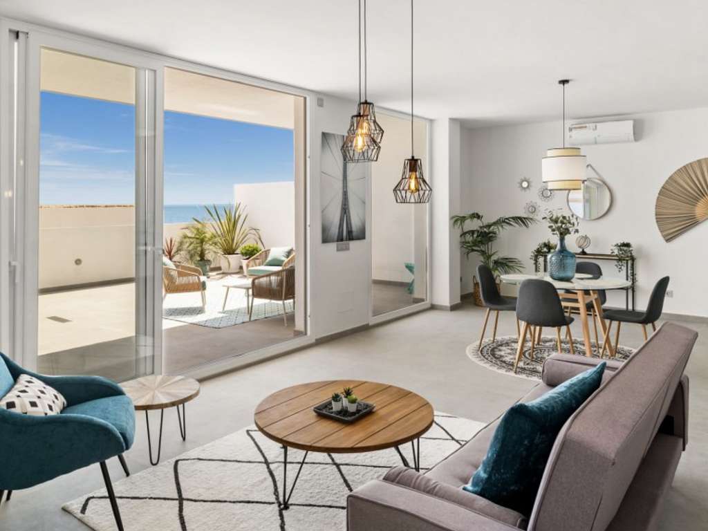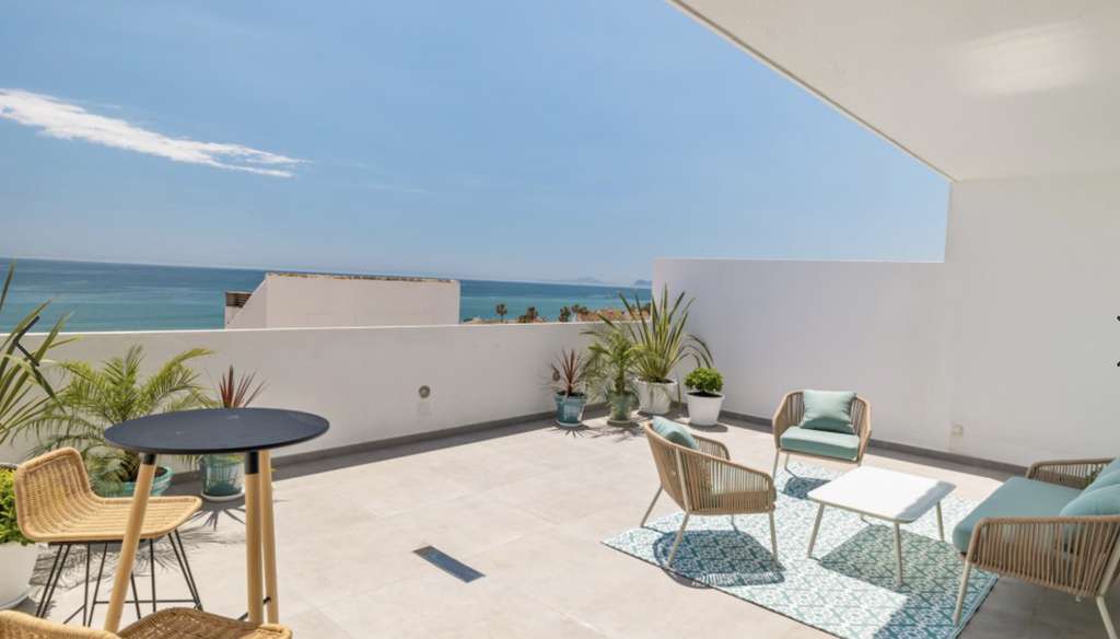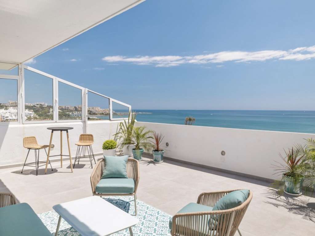 Ático dúplex de 3 dormitorios totalmente reformado en primera línea de playa y situado en la 9ª planta con espectaculares vistas inmejorables y panorámicas al Mediterráneo y a la costa. Orientación sur. Acceso directo a la playa y a poca distancia del puerto y del centro de la ciudad de Estepona.
