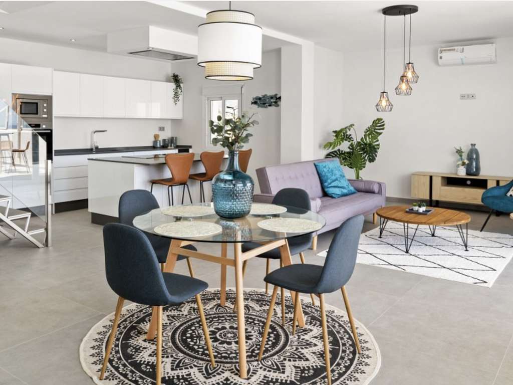 Planta principal: Amplio salón / comedor con cocina americana totalmente equipada con electrodomésticos Bosch. Directo acceso a una gran terraza cubierta y abierta con vistas increíbles. Aseo de invitados.