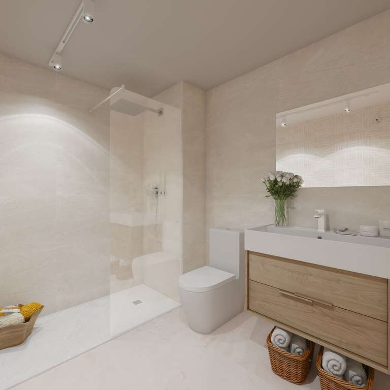 Este nuevo complejo residencial en Estepona Golf, situado en el corazón de la Costa del Sol, ofrece 69 apartamentos modernos y luminosos, diseñados para aprovechar al máximo la luz natural y las vistas panorámicas al campo de golf y al mar en algunas viviendas. Orientados al sur y suroeste, estos apartamentos de 2 y 3 dormitorios cuentan con amplias terrazas y están rodeados de un entorno natural espectacular. La urbanización, perfectamente integrada en el paisaje, combina lujo, confort y sostenibilidad, haciendo de este lugar una elección ideal para quienes buscan un estilo de vida exclusivo y relajado.EXTERIORESEl complejo se caracteriza por su diseño elegante y funcional, con edificios distribuidos estratégicamente para ofrecer las mejores vistas panorámicas al campo de golf y al entorno natural. Las viviendas en planta baja disponen de terrazas y jardines privados, mientras que los áticos incluyen amplias terrazas y soláriums privados, ideales para disfrutar del clima mediterráneo. La urbanización privada cuenta con jardines paisajísticos y una piscina comunitaria, proporcionando un espacio de relajación y disfrute en un entorno seguro y exclusivo.INTERIORESLos interiores de las viviendas están diseñados para maximizar el confort y la funcionalidad. Con 105 m² construidos y 90 m² útiles, cada apartamento cuenta con tres dormitorios dobles y dos baños completamente equipados. Las cocinas de diseño están amuebladas y equipadas con electrodomésticos modernos, como vitrocerámica, horno y frigorífico. Las viviendas disponen de aire acondicionado/calefacción, paneles solares, y un sistema de ventilación natural, garantizando un alto nivel de eficiencia energética y confort. Los amplios ventanales y las terrazas orientadas al suroeste/oeste permiten una conexión fluida entre el interior y el exterior, creando un espacio luminoso y acogedor.ZONAS COMUNESLa urbanización ofrece una serie de zonas comunes diseñadas para el disfrute de los residentes, incluyendo jardines bien cuidados y una piscina comunitaria. Cada vivienda cuenta con una plaza de aparcamiento privada en planta baja, con preinstalación para la carga de vehículos eléctricos, reflejando un compromiso con la sostenibilidad. La cercanía al Club de Golf Estepona añade un valor adicional, ofreciendo a los residentes la oportunidad de disfrutar de uno de los campos de golf más reconocidos de la región, con impresionantes vistas al mar y un entorno natural único.ESTEPONAEstepona, en la Costa del Sol, cautiva con su encanto andaluz, playas doradas y una rica historia. Sus calles floridas, el casco antiguo con sus casas encaladas y la Plaza de las Flores reflejan su esencia mediterránea. El turismo en Estepona se centra en sus playas, como la Playa de la Rada, su Paseo Marítimo y su vibrante vida nocturna. Sus festivales, como la Semana Santa y la Feria de San Isidro, ofrecen una muestra de su cultura y tradiciones. El estilo de vida en Estepona es relajado y acogedor. Los habitantes disfrutan de la vida costera, la gastronomía local en chiringuitos y restaurantes, y eventos culturales que resaltan la riqueza andaluza. La comunidad es cercana y se fomenta la vida al aire libre. Estepona es un lugar que combina historia, belleza natural y una atmósfera acogedora, siendo un destino popular tanto para turistas como para quienes buscan vivir la vida al estilo mediterráneo.