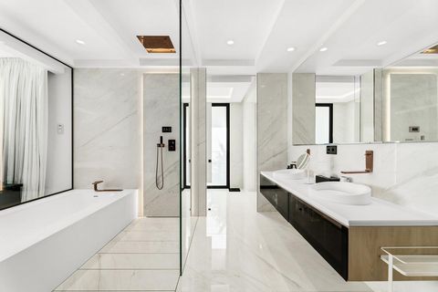 La propiedad dispone de cuatro dormitorios en suite, todos en una sola planta, y un amplio salón de planta abierta con ventanales de suelo a techo que se abren a una gran terraza con vistas al mar Mediterráneo. Otras características incluyen suelo radiante en toda la vivienda y cuatro plazas de garaje subterráneas.