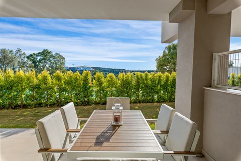 Apartamento en planta baja en un complejo recientemente terminado en el corazón de Estepona Golf La promoción se ha terminado recientemente y ofrece un diseño moderno, jardines comunitarios y una piscina compartida. La ubicación proporciona un rápido acceso a la ciudad de Estepona, a los servicios locales y a toda la Costa del Sol. La propiedad tiene vistas a la piscina comunitaria y disfruta de vistas orientadas al oeste sobre el campo de golf. La distribución incluye una sala de estar principal de planta abierta con aire acondicionado y una cocina totalmente equipada con lavavajillas, horno, vitrocerámica, lavadora y secadora. El espacio se abre directamente a una terraza cubierta y a un pequeño jardín privado. Hay dos dormitorios y dos baños. El dormitorio principal incluye un cuarto de baño con ducha y tiene acceso directo a la terraza. El segundo dormitorio cuenta con un cuarto de baño independiente. Ambos dormitorios tienen aire acondicionado. El apartamento se vende con una plaza de aparcamiento exterior. Es una opción práctica dentro de una urbanización bien cuidada, cerca del campo de golf y de los servicios de la zona.