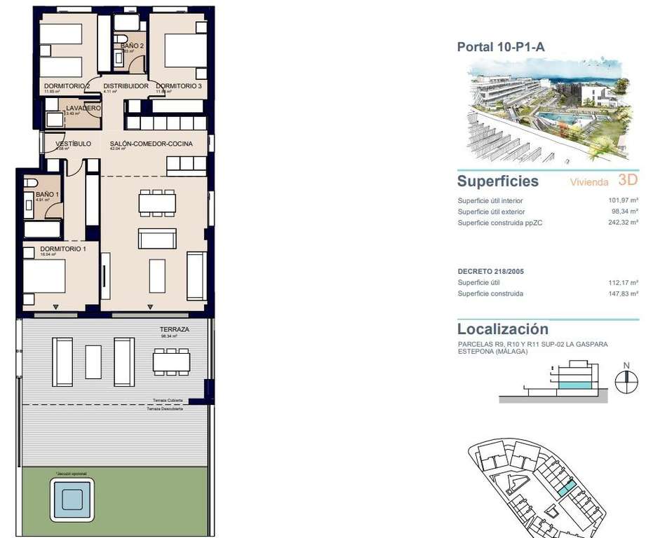 Situado a solo 10 minutos a pie de la playa, este residencial te permite disfrutar de la cercanía del mar, mientras que en sus alrededores encontrarás una amplia oferta de restaurantes, supermercados y otros servicios para tu comodidad. Además, gracias a su excelente ubicación, el proyecto está bien comunicado con el aeropuerto de Málaga (a 50 minutos) y el aeropuerto de Gibraltar (a 45 minutos), facilitando tus desplazamientos.