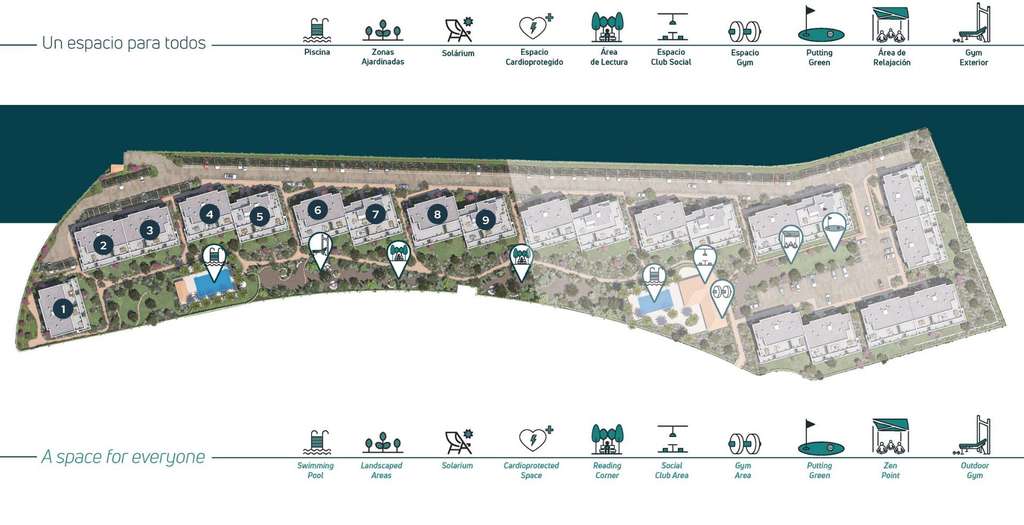 El residencial dispone de una excelente zona comunitaria con piscina, gimnasio interior y exterior, rincón de lectura, salón social-gourmet, putting green y zona Zen.