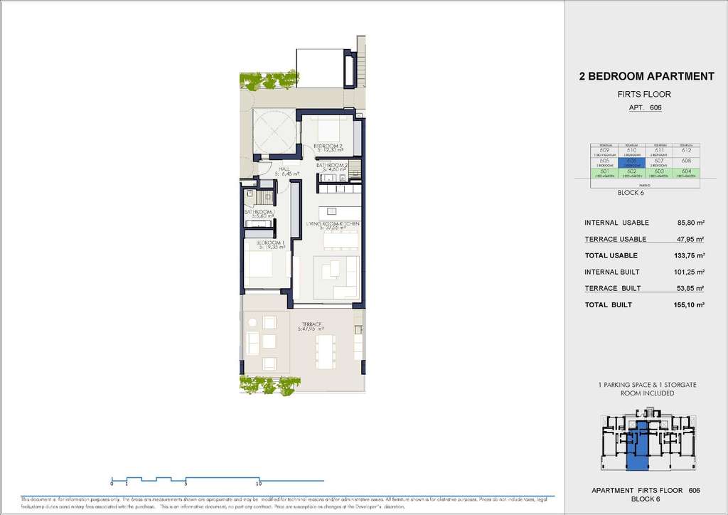 Todas las propiedades incluyen una o dos plazas de aparcamiento privadas y un trastero en el garaje subterráneo.