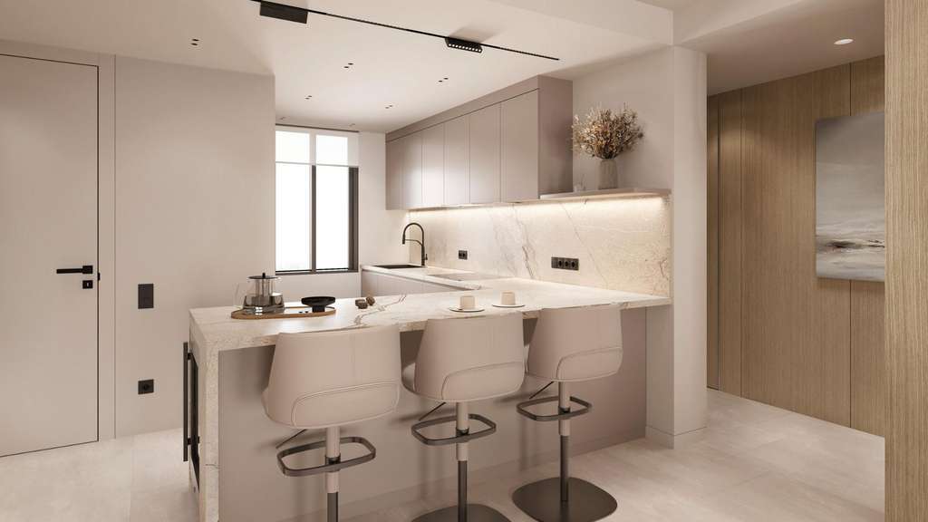 El corazón de cada hogar es una cocina de primera calidad con armarios italianos de alta calidad de Elmar y electrodomésticos de Miele. Los acabados personalizables y las soluciones energéticamente eficientes combinan estilo y funcionalidad, mientras que las distribuciones espaciosas incluyen un amplio espacio de almacenamiento, iluminación LED y zonas de lavandería independientes.