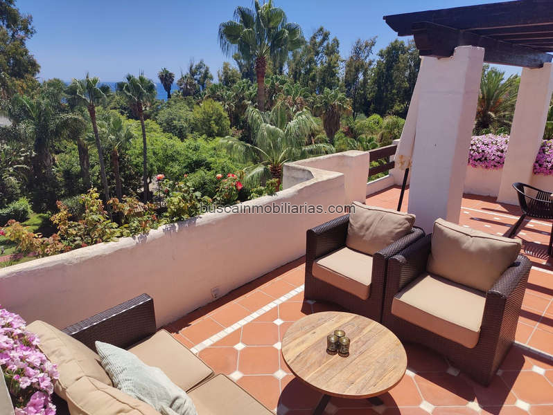 Maravilloso ático dúplex con vistas parciales al mar en una de las más prestigiosas urbanizaciones en primera línea de playa en Puerto Banús (Marbella).