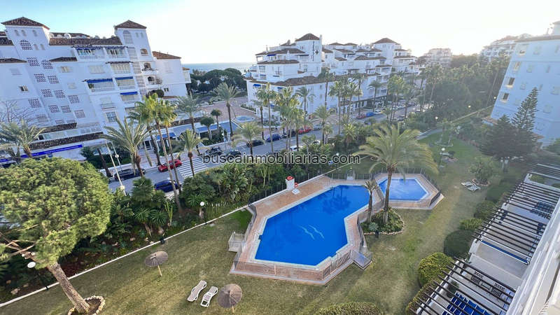 La propiedad esta orientada la sur con vitas al mar , jardines y una de las piscinas de la urbanizacion